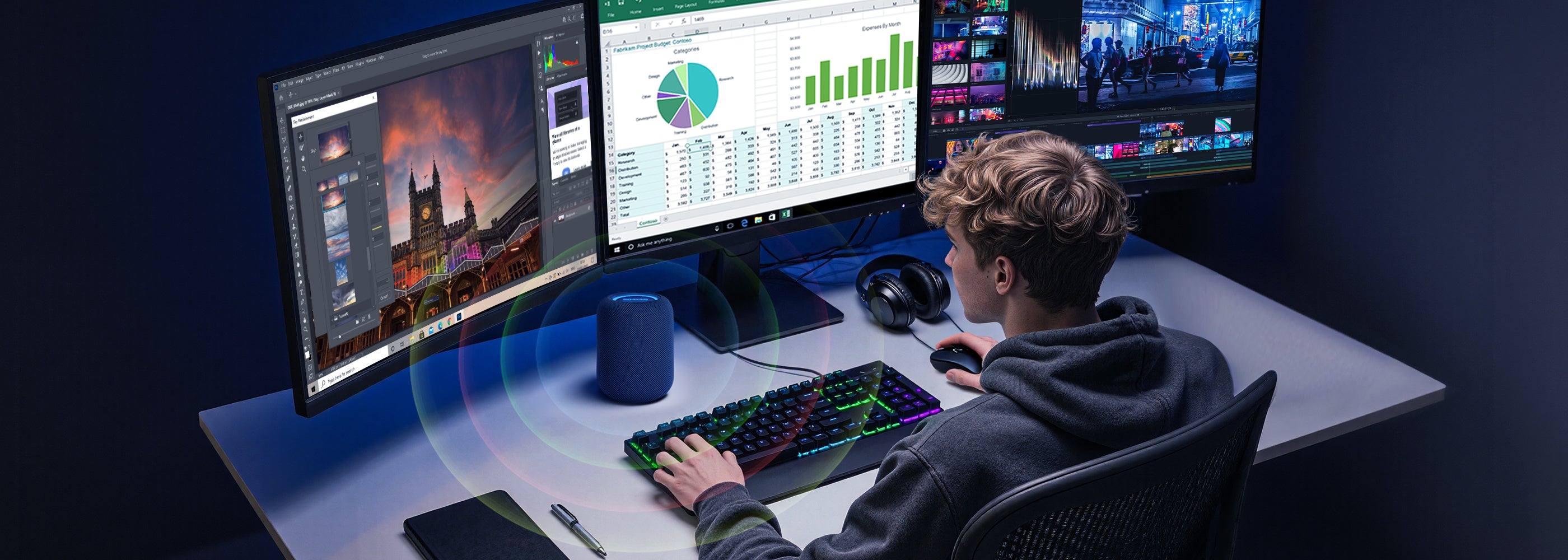 - All-in-One Audio & Stunning Design: Experience rich, immersive sound without external speakers. The space-saving cylindrical design with RGB lighting adds a modern flair to any setup.