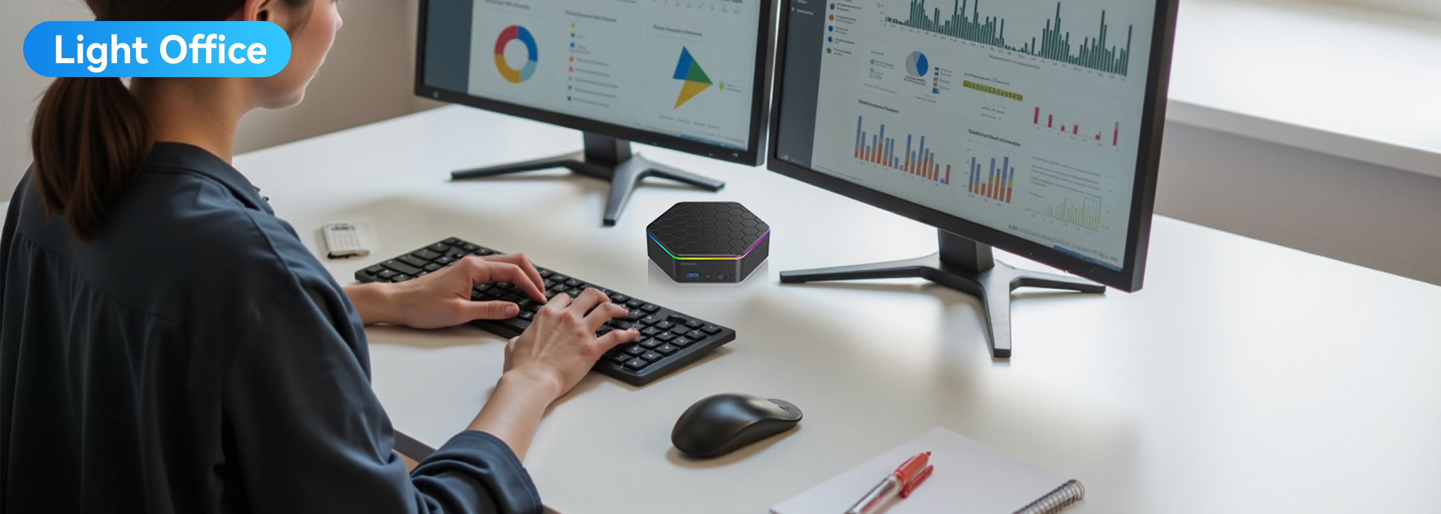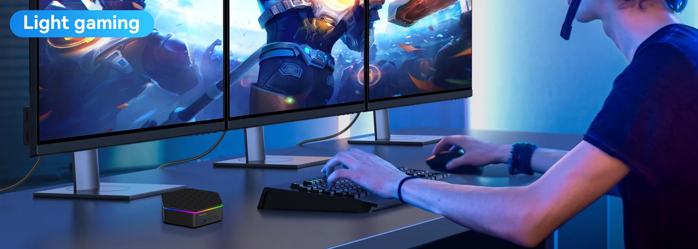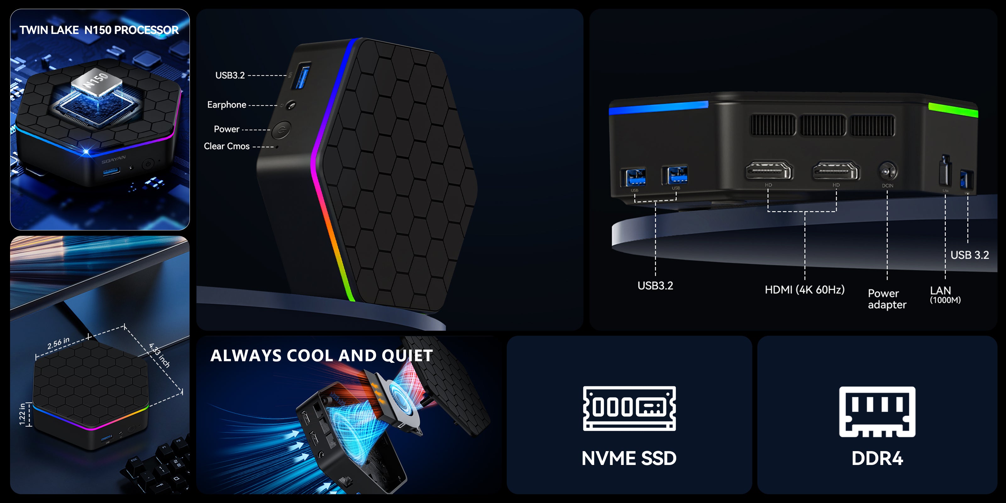 Meet the SOAYAN-N6 Mini PC – where cutting-edge design meets everyday performance. Featuring a unique hexagonal body with dynamic RGB lighting, this mini computer is more than a tool; it's a statement piece for your modern desktop. Powered by the efficient Intel N100 processor and 16GB RAM, it delivers smooth power for work and play, from 4K streaming to light gaming.